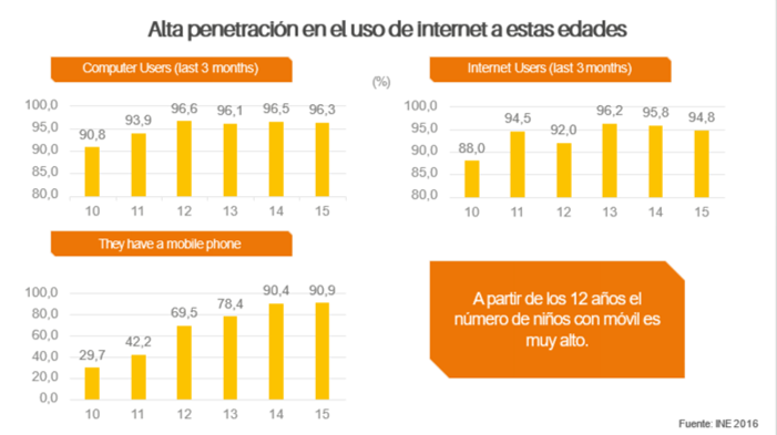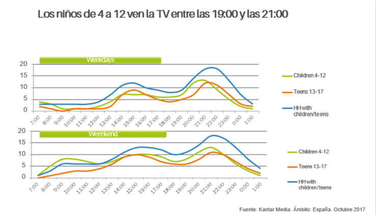 Si bien es cierto que los niños de entre 4 y 7 años siguen consumiendo bastante TV con sus padres, a partir de los 8 años prefieren internet a la TV.