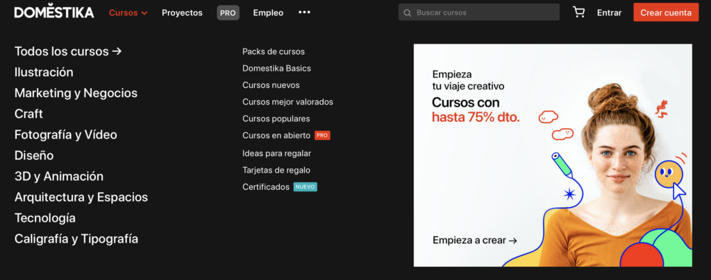 En segundo lugar, si os habéis propuesto implicaros más activamente, os recomendamos un estas páginas web donde encontraréis un amplio repertorio de cursos, apto para distintos perfiles. La archiconocida Domestika hace muchos años que ofrecen interesantísimos cursos a precios muy ajustados.
