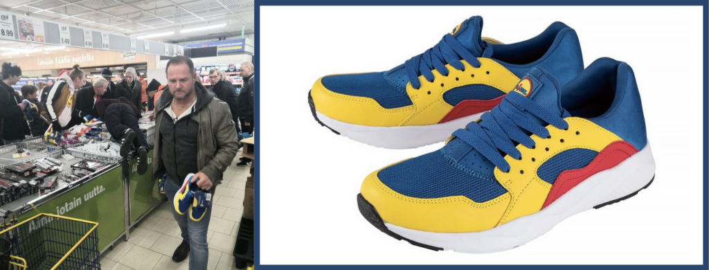Lidl, uno de los supermercados con mayor cuota de mercado en España y extendido por todo el mundo, es famoso por sus ofertas y promociones. En este caso ha vuelto a hacerse viral por lo menos esperado: unas zapatillas. Hace apenas una semana se puso a la venta en varios países (Finlandia, Bélgica, Alemania, Países Bajos, etc) una línea de ropa y accesorios básicos que llevan los colores corporativos de la marca. ¿El éxito? Completamente abrumador.