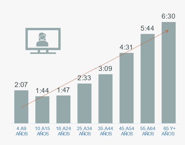 El tiempo de consumo televisivo tiene una alta correlación con la edad de las espectadoras, de esta manera, a mayor edad, mayor tiempo de consumo televisivo.