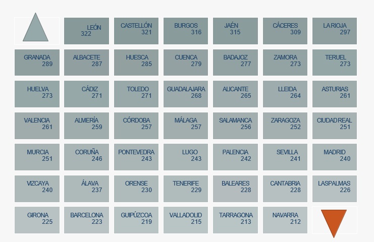 En el desglose por provincias encabezan los primeros puestos León, Castellón y Burgos, con más de 315 minutos mujer/día, mientras que las provincias que registran un menor consumo son Navarra, Tarragona y Valladolid, con menos de 226 minutos de promedio diario.