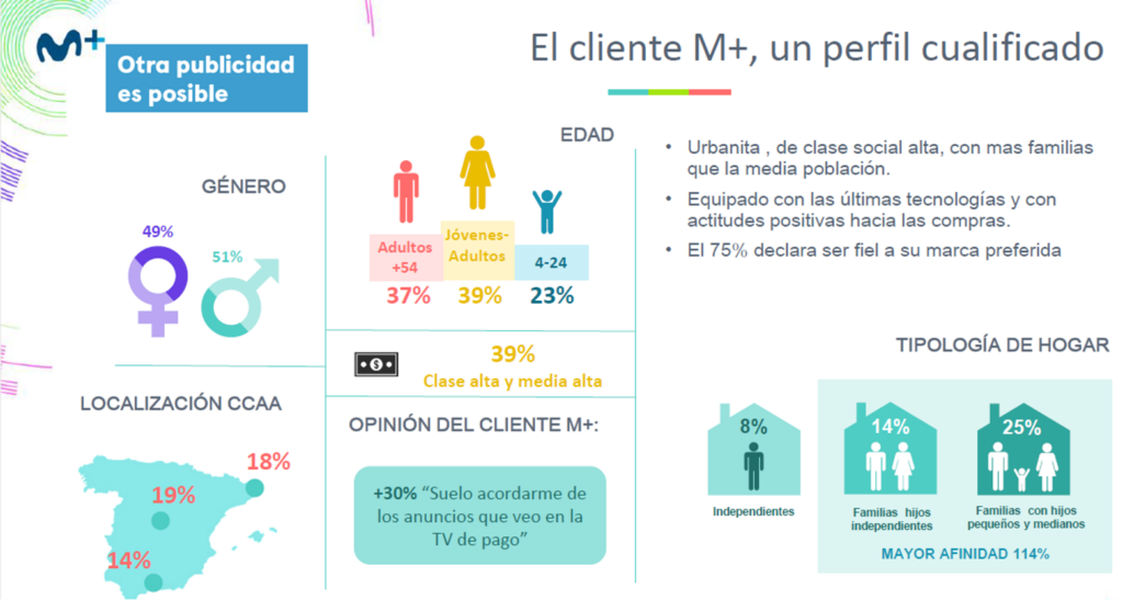 Movistar Plus: esta es una gran solución para anunciantes que no quieren renunciar a ninguna región, ya que con este formato llegamos a un público de una media de alto poder adquisitivo y tenemos un formato muy cualitativo que es el de Spot único, donde nuestro spot no convive con ningún otro y no es saltable ni clicable, es un formato de Spot convencional pero solo en la plataforma de Movistar, que ya cuenta con más del 37% de hogares de España.