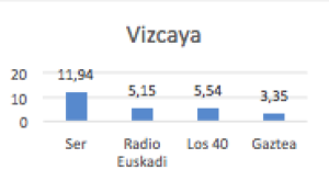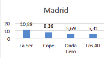 Por ejemplo, aquí podemos ver que no tienen nada que ver el Ranking de emisoras de radio en una campaña en Madrid, Catalunya o Vizcaya.