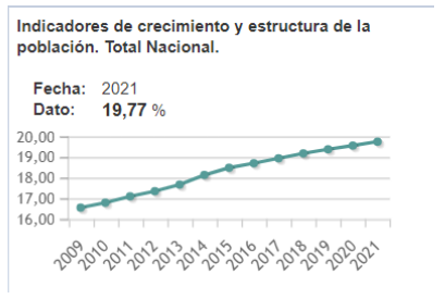 Que la población en España va envejeciendo lleva muchos años hablándose, pero, hoy en día, es una realidad. Según la información censal entre 2.009 y 2021 indica que la población de 60 años y más pasó de 16% al casi 20% de la población total nacional.
