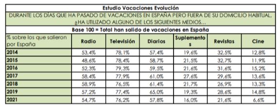 Para poder ver la evolución de los medios en vacaciones, vemos que no ha habido una gran diferencia en los hábitos de consumo, la única diferencia es en el medio cine, pero creo que es más por factor económico que otra cosa…