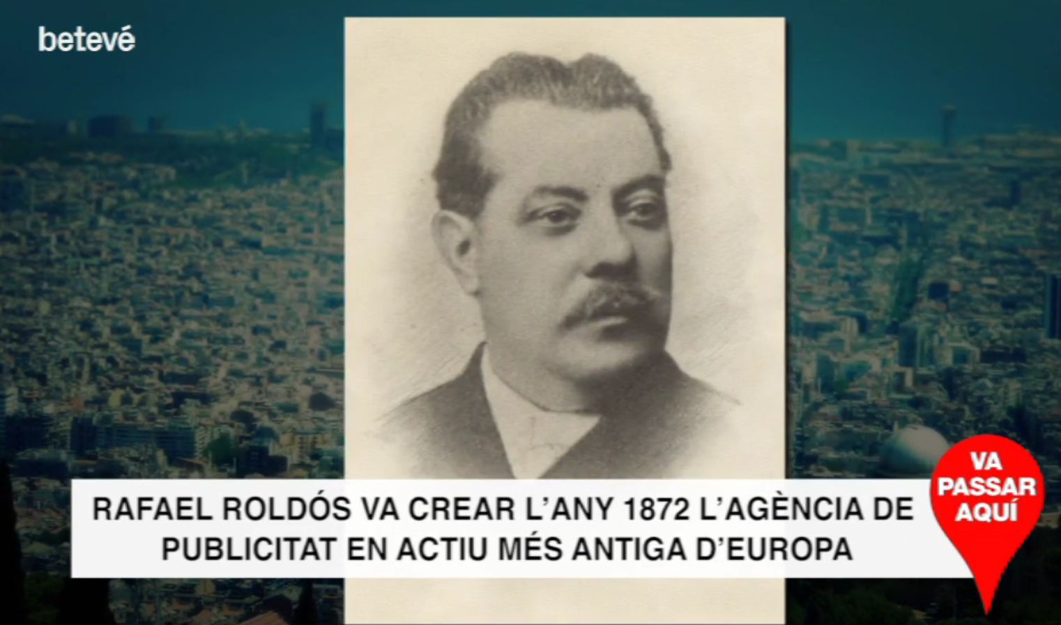 Consciente de las historias que esconden nuestras calles, el programa “Va passar aquí” tiene el noble propósito de rememorar cada caso para acercarlo a la ciudadanía. Porque, al fin y al cabo, las historias de la historia de una ciudad, pertenecen a sus ciudadanos. Y una de ellas tiene como protagonista al que fuera el fundador de esta casa, Rafael Roldós, un hombre que con el empuje y la fuerza que caracteriza a los personajes ilustres, decidió poner en marcha múltiples proyectos, sin ser del todo consciente de que estaba forjando los primeros cimientos de la historia de la publicidadde este país y cuyo nombre seguiría sonando centurias más tarde. En el marco del “Año Roldós”, en el que se cumplen cien años de su defunción, se está emitiendo el reportaje que lleva por título “El pioner de la publicitat”, y que se emite a lo largo de toda la semana en los siguientes pases: