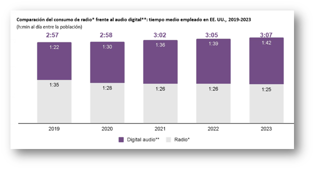 En 2021, el tiempo invertido en la escucha de música en streaming ha superado al de la escucha de radio.