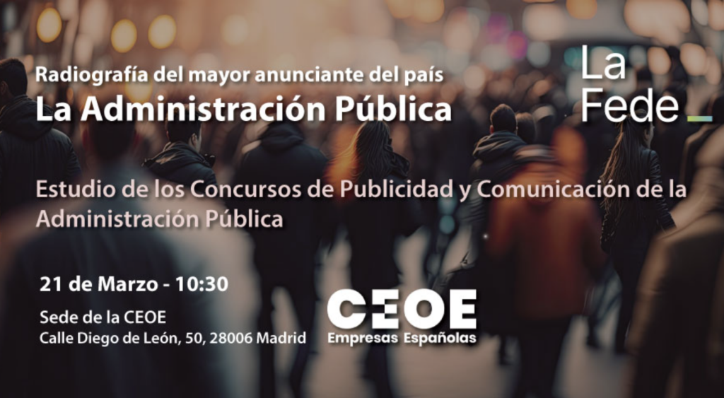 Que los concursos de agencia son importantes, lo sabemos. Que los concursos de agencia son un tema muy convulso, también. Y eso, además de quienes lo han vivido y sufrido en sus propias carnes, lo saben bien todas las entidades, asociaciones, colegios profesionales y demás colectivos profesionales cuyo objetivo es, o debería ser, velar por el sector y por los agentes que lo componen. Dejando atrás el conocido acuerdo de procedimiento de “La selección de Agencia” – documento que elaboraron en su día la Asociación Española de Agencias de Publicidad (AEAP) y la Asociación Española de Anunciantes (AEA), el con el fin de marcar un punto de referencia en el camino hacia la eficacia y evitar los concursos masivos y no remunerados– hoy queremos poner en valor la iniciativa que lleva a cabo la Asociación de Empresas de la Comunicación (La Fede). Se trata del “Estudio de los Concursos de Publicidad y Comunicación de la Administración Pública. Radiografía del mayor anunciante de España”, y que se presentará el próximo 21 de marzo. Como bien explican, “esta investigación analiza todos los concursos convocados en 2023 por las diferentes administraciones públicas (europea, estatal, autonómica, local y de empresas públicas) para llevar a cabo todo tipo de acciones y campañas de comunicación y publicidad”, y tiene como objetivo “seguir potenciando la transparencia, el conocimiento, la gestión, la eficacia y los resultados de la publicidad y la comunicación de la administración, en su conjunto el mayor anunciante del país, siendo un beneficio tanto para la propia administración como para el sector publicitario y de la comunicación, como para todas las empresas que forman parte del mismo: agencias de publicidad, agencias de medios, agencias y consultoras de comunicación y RRPP y todo tipo de empresas de servicios, así como a medios de comunicación y, por supuesto, a todos los ciudadanos”. Estaremos muy atentos a ver cuáles son las principales conclusiones al respecto; las del año pasado no era demasiado alentadoras, como puede leerse en la página web de La Fede.
