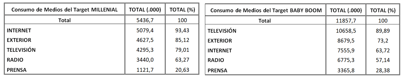 Como podemos observar, su medio natural es internet y es donde más fácil nos será impactarles. En contraposición, a los baby boomers muy probablemente los encontraremos sentados delante del televisor. Otro dato interesante que se desprende de este estudio es que, en contra de lo que podríamos pensar, los millenials están más comprometidos con los medios que sus predecesores, así pues si contraponemos los datos de cada medio veremos que solo consumen menos televisión y prensa que la generación anterior.