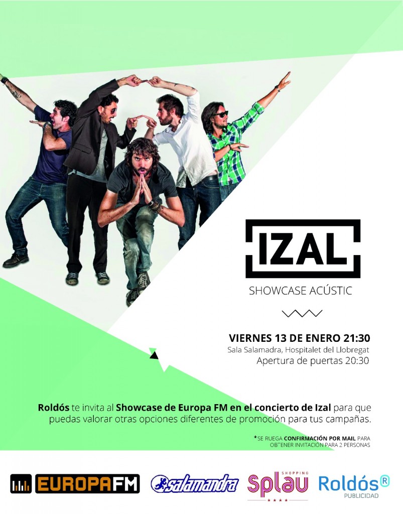 Y esto es lo que Roldós hizo el pasado viernes: de la mano de EuropaFM y junto con Splau, tuvimos la gran oportunidad de patrocinar el showcase que IZAL, uno de los grupos revelación del momento en nuestro país, ofreció en la Sala Salamandra de l’Hospitalet. Como dicen nuestros colegas de Europa FM, “¡los fans de IZAL estuvieron de enhorabuena!”.