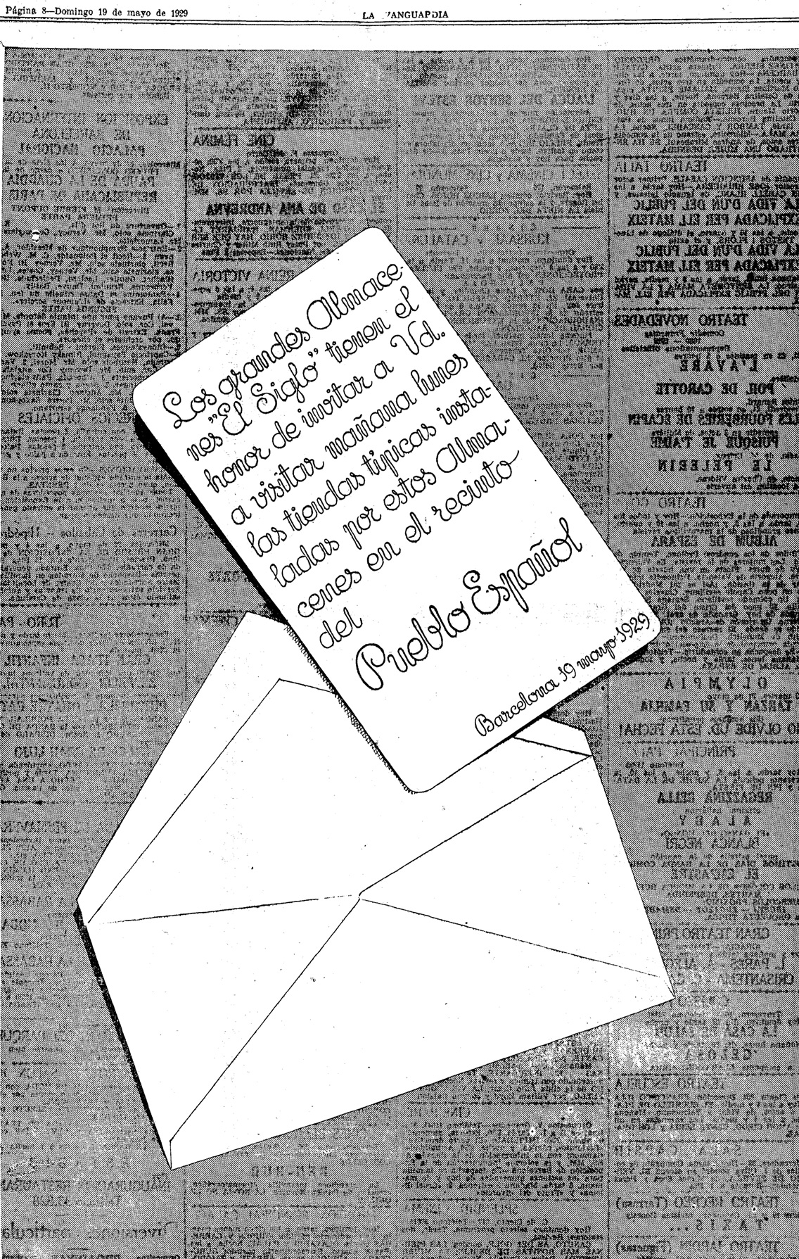 Anuncio de los grandes almacenes El Siglo durante la Exposición Internacional de 1929
