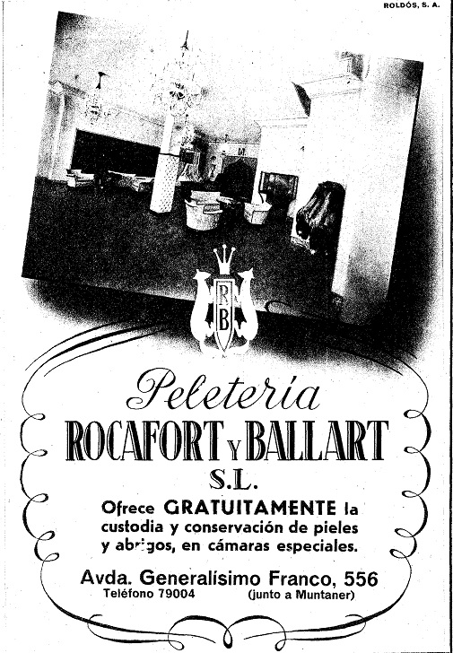 Anuncio de peletería ya desaparecida, publicado por Roldós (La Vanguardia, 23 de abril de 1944, pág. 2).