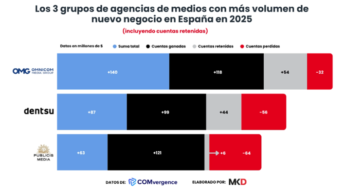 Las cifras ayudan a entender la dimensión: alrededor de 10.000 millones de dólares en nuevo negocio, una parte muy relevante del mercado global en revisión y una posición destacada frente a otros grandes grupos como WPP o Omnicom Group.