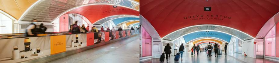 Otra de las acciones notorias que podemos hacer en Atocha es vinilar el pasillo Moneo, de 200 metros de largo por 31 de ancho, dotado con pasarelas rodantes, comunica los andenes con el vestíbulo de llegadas, que, a su vez, conecta con el intercambiador de Cercanías y Metro, así como con la salida y los aparcamientos. Varias bóvedas de acero modulado sirven de cubierta.