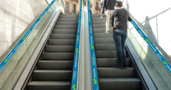 Por ellos pasan a diario miles y miles de personas. Aeropuertos, metros, estaciones de tren, centros comerciales acogen a gente que está preparada para leer y procesar lo que una adecuada estrategia de comunicación le quiera transmitir, a través de un mensaje impreso en un vinilo que se coloca fácilmente en el pasamanos de ese transporte mecánico.