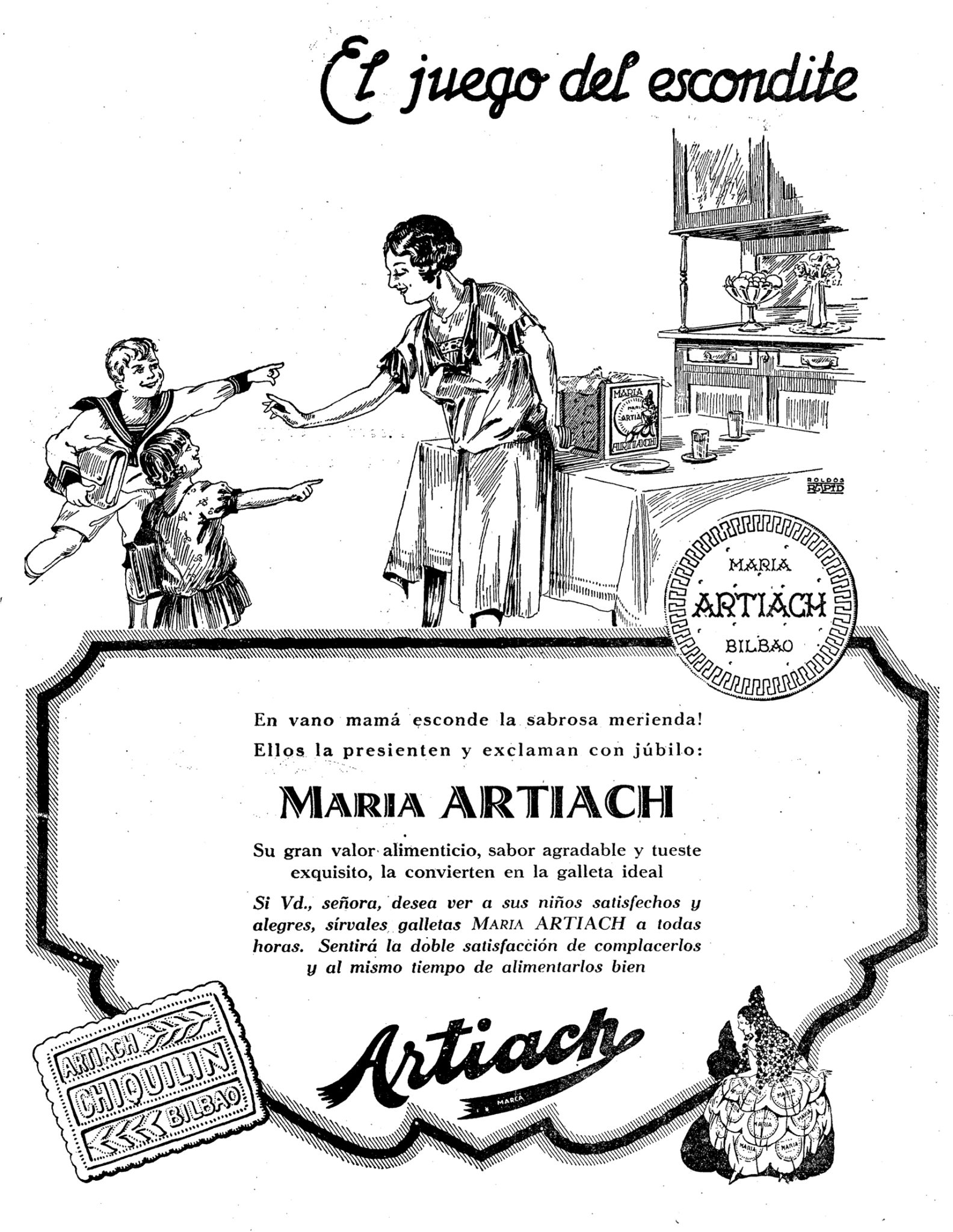 A continuación nos parece interesante mostrar algunos anuncios realizados por Roldós Rapid para el trabajo que realizaba este nuevo modelo de agencias y veremos, igual que ocurría con los jarabes Resyl (como pudimos ver hace un par de semanas), una publicidad moderna, una publicidad muy similar a la que podemos ver actualmente. De entre todos los anunciantes, se nos ha antojado mostrar algunas de las muchísimas piezas realizadas para las galletas María, de Artiach, una empresa para la que esta casa trabajó mucho tiempo, realizando anuncios tan bellos como los que mostramos a continuación: